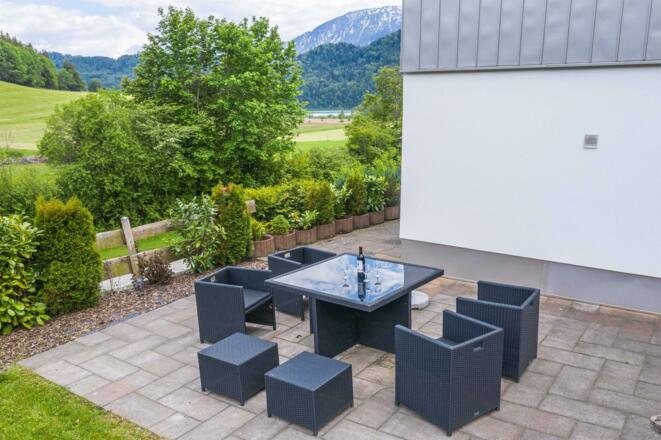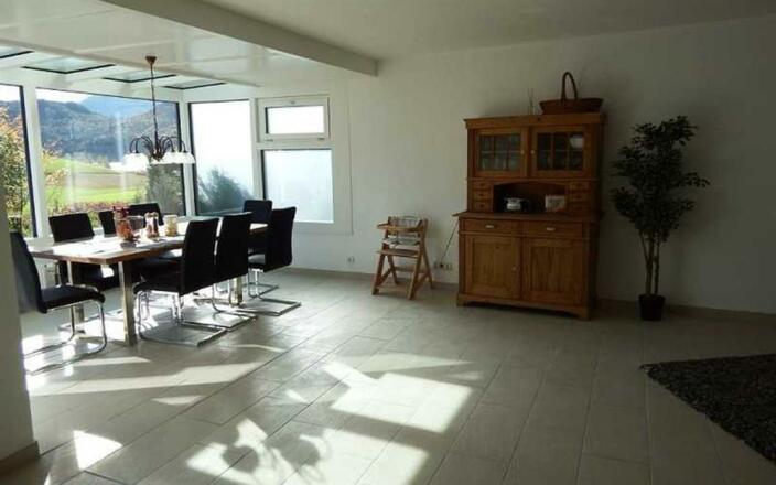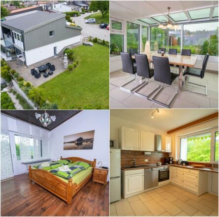 Exclusives Ferienhaus mit Wintergarten und Sauna. Traumhafter Blick auf Berge, See, Wald und Wiesen. Drei Schlafzimmer, großzügiges Bad mit Dusche und WC, separates Gäste-WC. Offener Wohnbereich mit Wohn-/Esszimmer, Wintergarten und Küche, zwei Terrassen, Garten mit Rasen zum Spielen, 3 PKW-Stellplätze, Bio-Sauna und Wlan.SonstigesInklusive: Heizung, Wasser, Strom, Endreinigung, Bettwäsche, Handtücher, Gästetaxe, W-Lan, Sauna, Waschmaschinen- und Wäschetrocknernutzung