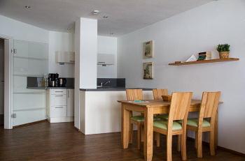 2-Zimmerwohnungen mit hochwertiger Ausstattung. Alle Wohnungen mit Küchen im Wohnbereich und großem Südbalkon / Terrasse mit unvergleichlicher Aussicht.SonstigesBett- und Küchenwäsche, Handtücher, Internetnutzung und Festnetztelefon, Parkplatz direkt vor dem Haus und Waschmaschinennutzung inklusiv.