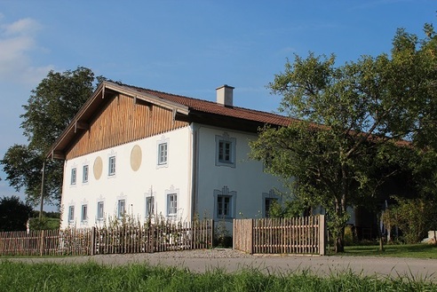 FEWO im EG, 38 qm, bis 3 Personen. Denkmalgeschütztes kernsaniertes Bauernhaus, in ruhiger reizvoller Lage, Berg- u. Seeblick. Zum See 1 km, zur S-Bahn München 7 km, Wanderweg zum Kloster Andechs.