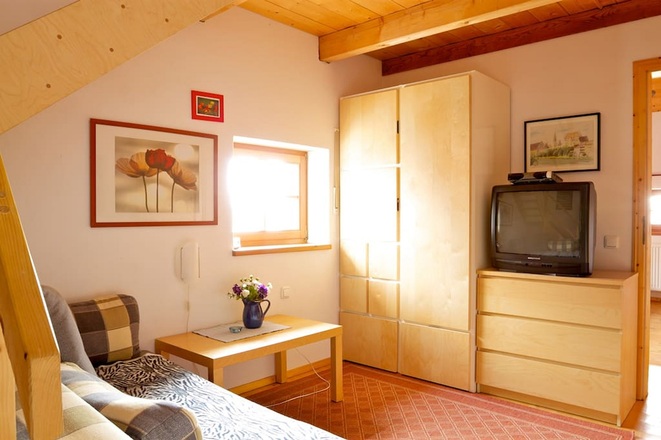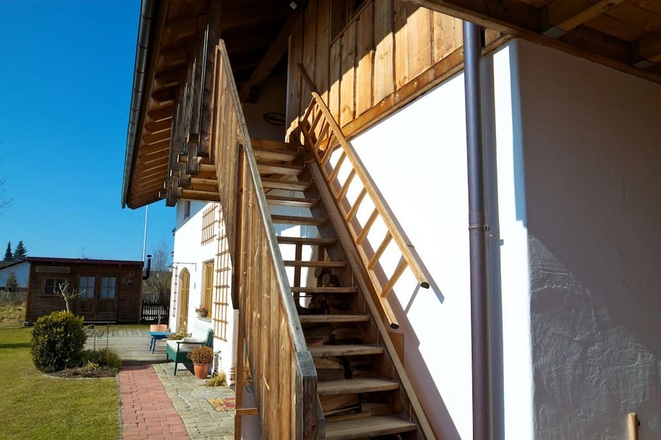 Wir vermieten eine schöne und gemütliche, am Waldrand gelegene Ferienwohnung. Sie können die 2003 errichtete Wohnung über einen eigenen Eingang erreichen. Die Wohnung liegt im 1. Stock und ist über eine Außentreppe erreichbar. Zur Ferienwohnung gehört ein eigener Freisitz mit Balkon. Die Wohnung ist konzipiert für maximal 4 Personen und hat insgesamt 4 Schlafmöglichkeiten. Es gibt ein Doppelbett in der Galerie, ein Einzelbett in der Küche, eine Schlafcouch im Wohnzimmer und ein Kinderbett. Der Wohn-/Schlafraum ist verbunden mit einer Galerie. Es gibt keine abgeschlossenen Zimmer. Die kleine Küche ist im Wohnraum mit integriert. Sie ist mit allen nötigen Geräten ausgestattet. Internet über WLAN. In 4 Gehminuten kommt man zum Regionalbahnhof Edling, von wo aus der Zug in 50 Minuten nach München fährt. Es gibt viele wunderschöne Ausflugsziele, einen Weiher und viel Grün in der nahen Umgebung. Viele Einkaufsmöglichkeiten im Ort bzw. im Gewerbepark. Pizzeria, Gasthaus, Tankstelle uvm.