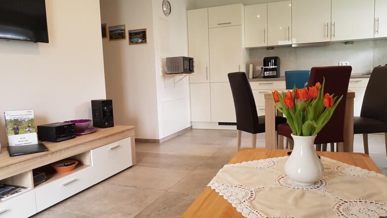 Die gemütliche 45 qm große Nichtraucher-Ferienwohnung, liegt gegenüber den „Chiemgau Thermen“ (2 Minuten zu Fuß) direkt am schönen Kurpark. Die Lage ist ein idealer Ausgangspunkt für zahlreiche Freizeitangebote, wie z.B. Wellness in den „Chiemgau Thermen“, Wandern im nahen Naturschutzgebiet, Rad fahren, geführte oder selbstständige Bergwanderungen, baden an den nahe gelegenen Seen (Eggstätt-Hemhofer Seenplatte, Simssee oder Chiemsee), oder eine Fahrt mit der Seilbahn auf die Kampenwand. Eine separate Praxis für Physiotherapie befindet sich im Haus, genauso wie eine Münzwaschmaschine und ein Münztrockner. Die Erdgeschosswohnung ist barrierefrei und hat einen separaten Eingang. Im ruhigen südseitigen nicht abgeschlossenen Außenbereich stehen zwei gemütliche Gartenstühle und ein Tisch. Stellplatz für ein Auto und Fahrräder sind vorhanden.