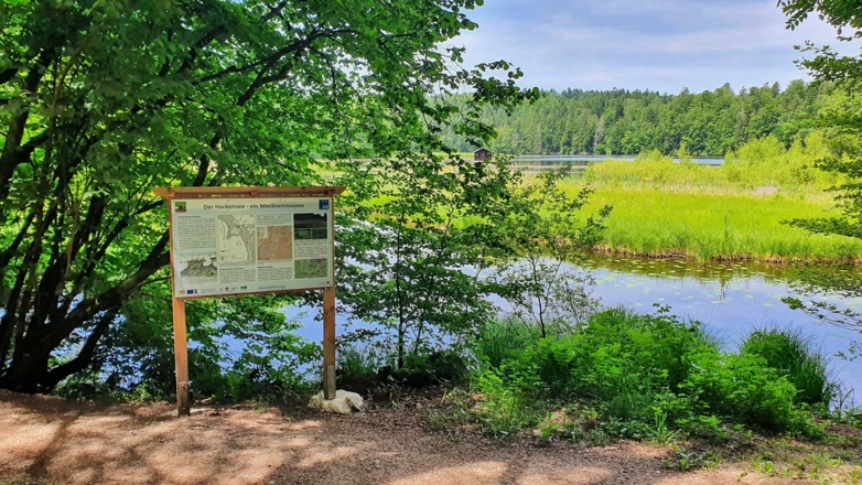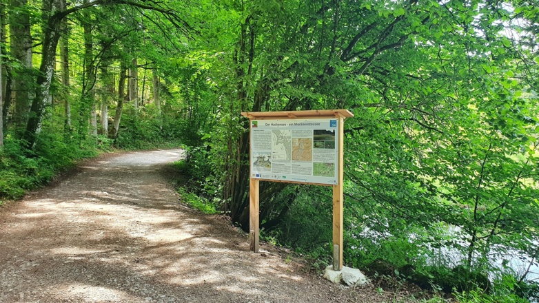 Rasant geht es nun bergab in den Ort Kleinhartpenning und hier der Beschilderung folgend bis zum Hackensee, der mit einer weiteren Station aufwartet. Lässt man die Räder oben im Ort stehen, spart man sich einige mühsame Höhenmeter vom See zurück auf die Route.