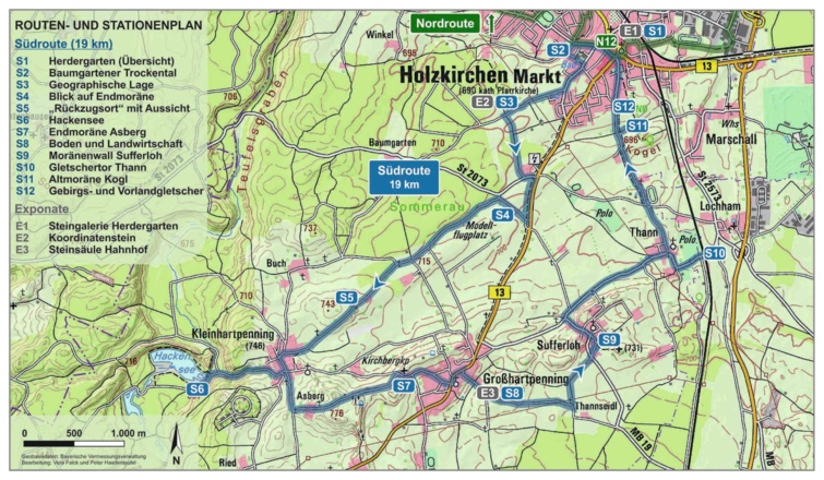 Der südliche Teil des 2021 eröffneten Holzkirchner Geo-Lehrpfads führt ins Hügelland zwischen Holzkirchen, Kleinhartpenning und Großhartpenning, bevor er über Sufferloh und Thann wieder die Marktgemeinde erreicht. Zwölf kompetent gestaltete Schautafeln bieten einen guten Überblick über die geologisch Entwicklung des Alpenvorlands mit einem Fokus auf die letzten Eiszeiten.