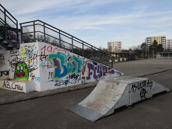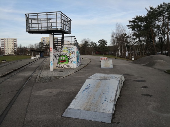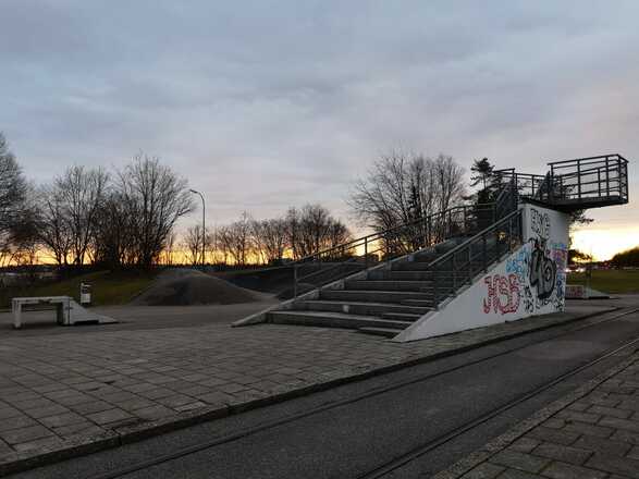 Kleiner Skatepark mit Aussichtsplattform.