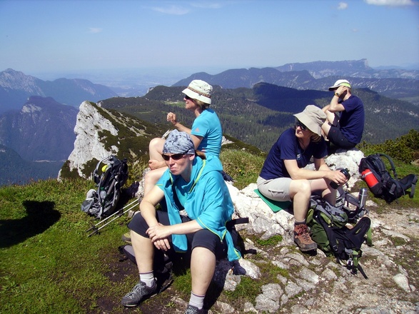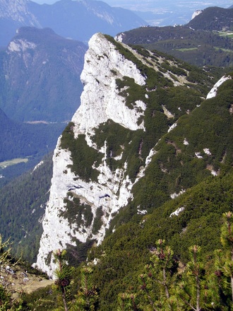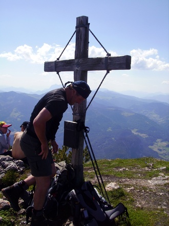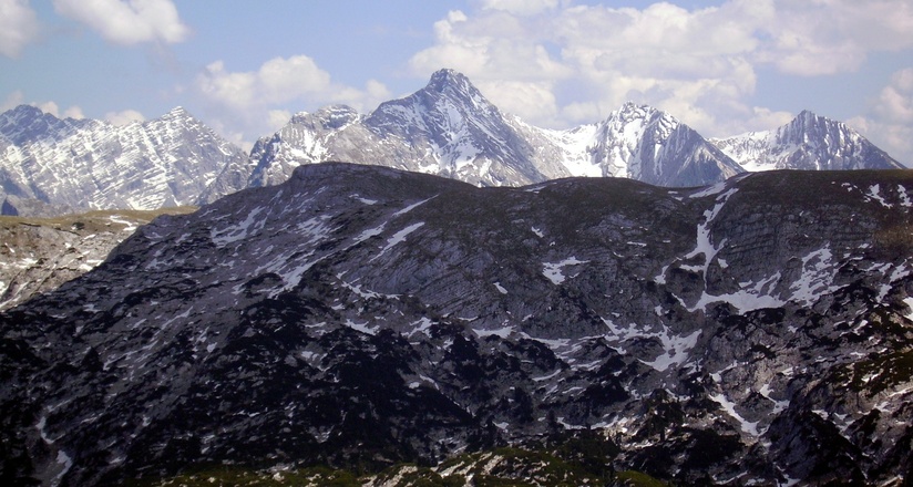 Der Weitschartenkopf ist der Hausberg der Neuen Traunsteiner Hütte - nicht zu übersehen. Der Große Bruder liegt am Nordwestrand der Hochfläche der Reiter Alpe etwas dahinter.