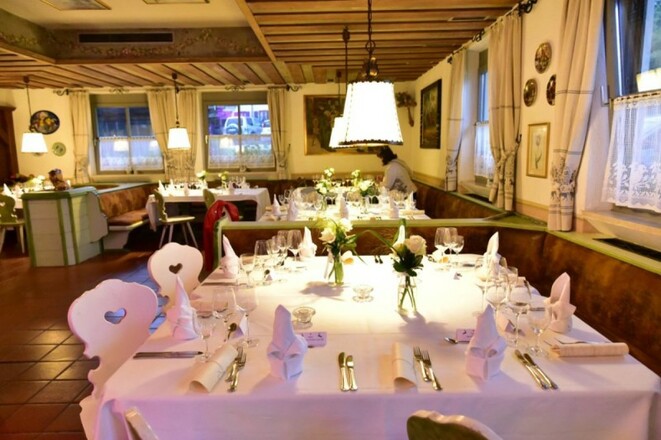 Der Familienbetrieb bietet eine traditionelle Speisekarte sowie Brotzeiten. Die Küchenchefin und ihr Team überraschen Sie auf Vorbestellung auch mit Gerichten aus Frankreich, wie z.B. sole meunière, homard á la nage, poussin à l'estragon, magret de canard und vieles mehr.