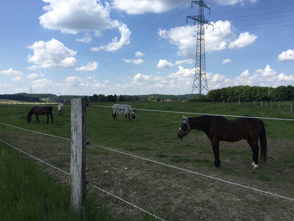 In Loitersdorf links Richtung Hainza und Hüttelkofen auf den Kirchturm von Alxing zu. In Alxing über Pienzenau nach Taglaching. An der Kapelle von Taglaching rechts Richtung Grafing. Hier ist wieder mehr Verkehr, es gibt nur ein kurzes Stück Radweg. Nach der Unterführung links zum Grafinger Bahnhof und dann der Beschilderung nach Nettelkofen folgen. Beim Kreisverkehr nach der zweiten Abfahrt rechts auf den Radweg. Ab hier ist es wieder ruhig. Wir kommen auf der Aßlkofener Straße vorbei an der Kugler Alm, die eventuell zu einer Einkehr lädt. Der Eingang ist ebenerdig. Wir queren die Münchner Straße zum Egglburger See mit dem Wirtshaus zur Gass. Nach dem Wirtshaus führt ein Schild rechts Richtung S-Bahn Ebersberg. Der Weg wir schmal und schottrig, soll auch am Ende steil werden. Deshalb radle ich zurück zur Münchner Straße, links am Radweg. Bald kommt ein Schild das rechts zum S-Bahnhof Ebersberg führt.