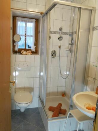 Unsere beiden großzügigen 50m² und 60m² großen, komfortablen Ferienwohnungen im 1. OG haben getrennte Wohn- und Schlafräume, neue Bäder mit Glasdusche, Deckenbrause, Waschtisch, Handtuchwärmer und WC.