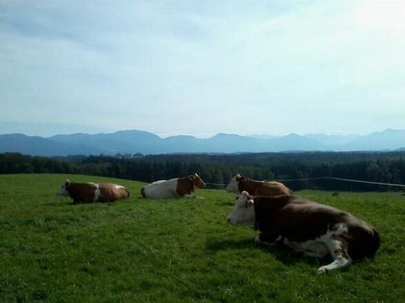 Unser Bauernhof liegt im bayerischen Voralpenland, südöstlich des Starnberger Sees in rühiger Lage. Die erhöhte Lage unseres Hofes bietet einen Blick auf die Alpenkette und Zugspitze . Wir bewirtschaften einen Bauernhof mit 40 Kühen und Jungvieh ,wir haben unter anderem auch noch Schweine ,Katzen und Kaltblutpferde . Unser Betrieb ist auf Forst- und Milchwirtschaft ausgelegt. Unser Gartenhäuschen lädt zum Grillen, Entspannen und um die schöne Aussicht genießen ein.