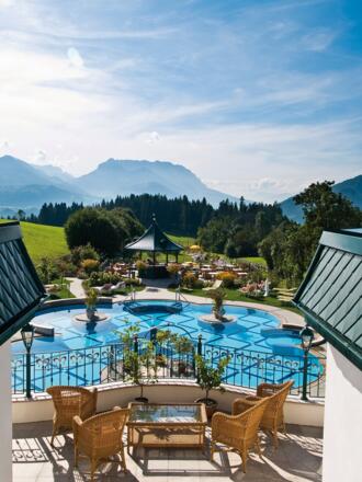 Wo Österreich an Bayern grenzt, in Kössen im Tiroler Kaiserwinkl, liegt das 4-Sterne Wellness-und Sport-Hotel Peternhof in herrlicher Panoramalage vor der majestätischen Kulisse des Wilden Kaisers. Ob Golfen, Tennis spielen oder auf den Haflingern des hauseigenen Reiterhofs das Glück der Erde finden … der Peternhof bietet für jeden Geschmack ein abwechslungsreiches Sport-& Aktivprogramm. Der weitläufige 3.500m² große Wellness-& Spa-Bereich inkl. orientalischen Bano Real, Sauna Almdorf, Vitalgarten und Eventsaunabereich machen auf 3.500m² zusammen mit den großzügigen Wasserwelten im Innen-und Außenbereich und dem vielfältigen Angebot an Beauty-Treatments das Urlaubsglück perfekt. Für die jungen Peternhof-Gäste gibt es eine eigene Kinder-Landschaft samt abenteuerlichem Außenbereich sowie ein abwechslungsreiches Spiel- und Aktivprogramm und ganztägige Betreuung für Kinder ab 3 Jahren. Dass man im Peternhof und seinen facettenreichen Zimmern und Suiten ebenso kaiserlich residiert, wie man auch kulinarisch mit der exklusiven Peternhof-Küche verwöhnt wird, versteht sich dabei von selbst.