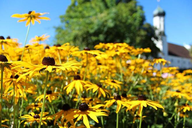 Ruhe und Entspannung finden im Kräuter- und Meditationsgarten des prächtigen Klosters in Benediktbeuern.