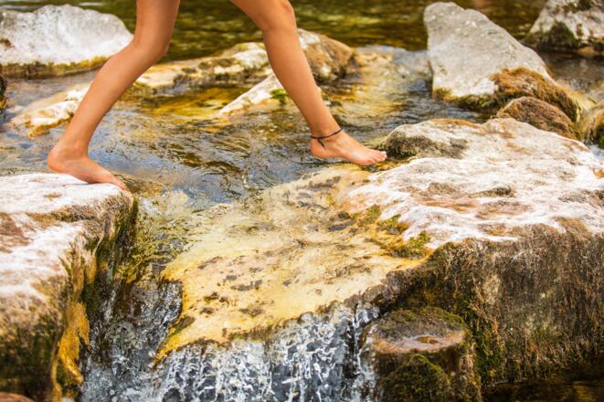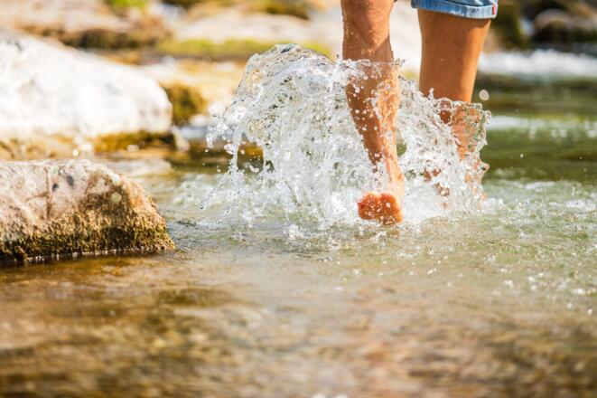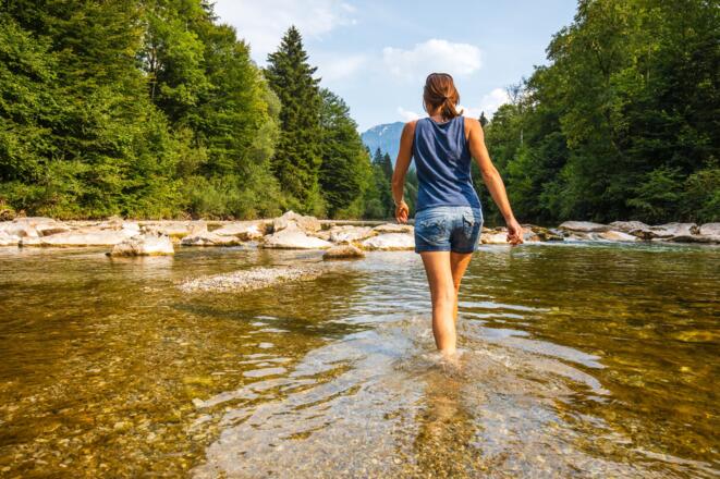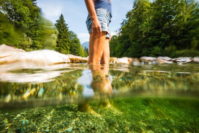 Alternativ kann man auch ganz wunderbar im flachen Wasser der Traun kneippen!