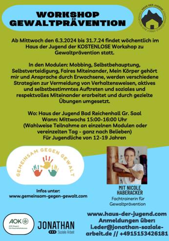 Wir freuen uns den Gewaltpräventionsworkshop im Haus der Jugend kostenlosanbieten zu können.