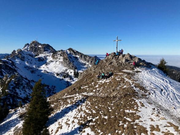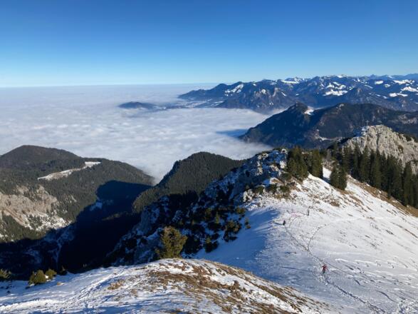 Einen tollen Blick vom Wendelstein bis zum Chiemsee – das erwartet einen am Gipfel des 1720 Meter hohen Wildalpjochs. Mit öffentlichem Nahverkehr erreichbar: Bequem mit BRB von Rosenheim nach Brannenburg.