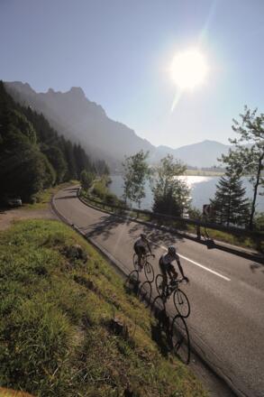 Unter Radsportlern ist das Tannheimer Tal schon länger bekannt, denn 2001 zog der Tross der Österreich Radrundfahrt durchs Tal. 2005 kamen die Radprofis der Bayernrundfahrt bei der Auftaktetappe auf Tiroler Boden und wurden mit der Bergwertung Tannheimer Tal und der Bergwertung Jungholz belohnt. Und sogar Profis fielen die landschaftlichen Reize des "wohl schönsten Hochtal Europas" auf. Sattgrüne Wiesen, der Haldensee und eine schöne Bergkulisse begleiteten die Radprofis auf ihren Wettkampfkilometern. Und somit hat sich das Tannheimer Tal auch als ideale Region für gezieltes Training oder ausgedehnte Touren angepriesen. "Das Tannheimer Tal ist ein idealer Startpunkt für lange Rennradtouren in die umliegenden Regionen wie zum Beispiel an den Bodensee oder an den Arlberg", so Michael Keller, Geschäftsführer des Tourismusverbandes Tannheimer Tal und ehemaliger Mountainbike- Bundestrainer Österreichs. Radsportler finden im Tannheimer Tal neben dem idealen Ausgangspunkt auch eine breite Palette von Unterkünften. Vom 5 Sterne Haus bis zum Privatzimmer können Sie Ihe Unterkunft wählen. Nach einer schönen Ausfahrt die Seele baumeln lassen und neue Kräfte tanken. - Das Tannheimer Tal