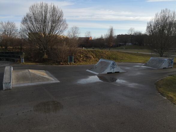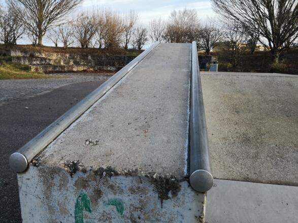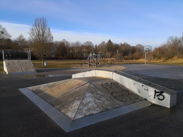 Direkt an der ehemaligen Panzerwiese liegt der 300 qm große Skatepark mit den folgenden Street Elementen: