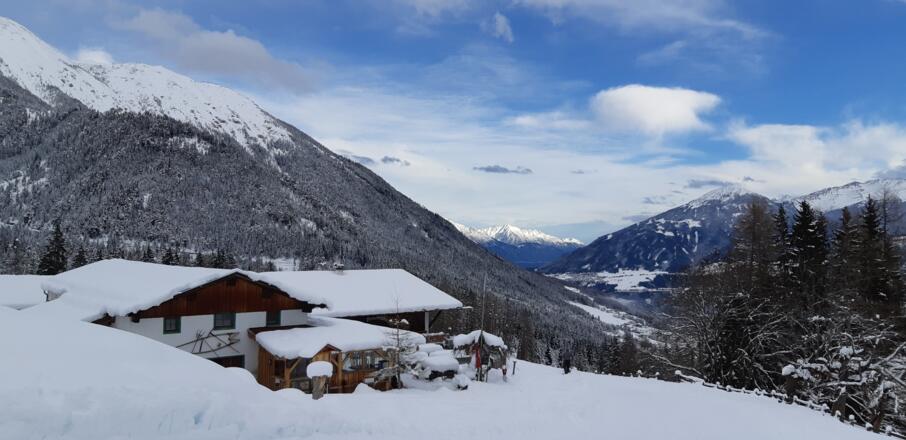 Von der Talstation der Bergbahnen Schlick 2000 führt uns die Piste einen schmalen Ziehweg entlang, der auch bei ausreichender Schneelage durch den Wald abgekürzt werden kann, zum Gh Froneben (1306 m). Der nächste Wegabschnitt ist sehr flach, gemütlich erreichen wir die Schlickeralm. Weiter folgen wir der Piste taleinwärts und steigen nun etwas steiler zur Zirmachalm auf. Weiter geht es der Piste entlang zum Sennjoch.