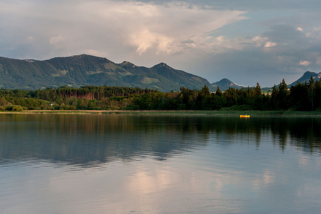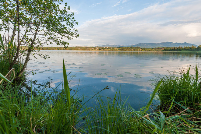 Eine 20 km lange, aber gemütliche Radtour, die jederzeit zu einer kleinen Erfrischung im kühlen Nass einlädt. Entspannung zwischendurch ist garantiert auf einem der vielen Bankerl mit einem grandiosen Ausblick auf die atemberaubende Bergwelt und den idyllischen Simssee. Stärken kann man sich mit guter bayerischer Küche und frischen Fisch bei den Seegaststätten und Kiosken entlang des Ufers oder in den beschaulichen Dörfern der Voralpenlandschaft. Der Simssee umfasst knapp 7 Quadratkilometer und ist damit der weitflächigste See im Rosenheimer Landkreis, auch kleiner Bruder des Chiemsees genannt. Das Südufer steht steht 1963 unter Naturschutz.