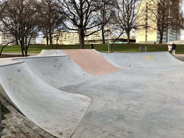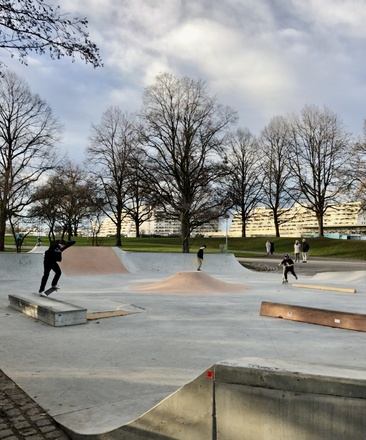 Moderne Skateanlage inmitten des schönen Olympiaparks.