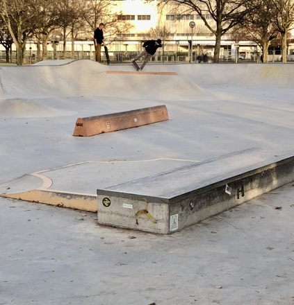Der alte Stonepark erscheint im neuen Design mit noch mehr Obstacles: Kein Wunder, dass der Skatepark noch so jungfräulich aussieht. Erst 2019 wurde der Stonepark, einer der ältesten Skateparks Deutschlands, nach einer Komplett-Sanierung neu eröffnet. Von Curves, Banks, Rails über Manual Pad mit Stufe bis hin zu Manual Pad Roof mit Quarter, hier ist verbaut was Bock macht. Das Multi-Lines-Konzept ermöglicht es, kreuz und quer sämtliche Tricks aneinanderzureihen.