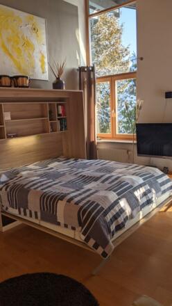 studio sunrise ist eine idyllische, lichtdurchflutete Oase in einem sympathischen Dorf. Das Haus liegt direkt am Waldrand in einer ruhigen Lage. Einlieger mit separatem Eingang. Die bodentiefen Fenster geben einen Blick frei in einen parkähnlichen Garten mit natürlichem Bachplätschern. Wer in die Ferne schweifen möchte, der genießt den Bergblick auf die Bayerischen Alpen. In direkter Umgebung sind natürliche Waldpfade und die Loisach. Parkplätze stehen kostenlos zur Verfügung und Radl können sicher untergestellt werden.