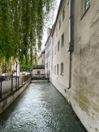 Wir starten am P&R in Meitingen Richtung Augsburg. Eine prächtige Stadt die vom Lech auf vielen Kanälen durchflossen wird. Eine Fahrt durch die Innenstadt lohnt sich allemal. Als Wildwasser-Kanute schaue ich den Eiskanal, die ehemalige olympische Wildwasserstrecke, genauer an. Warum es den Lech und parallel dazu den Lech-Kanal auf über 15km Länge gibt konnte mir niemand sagen. Auch weiter südlich ist der Lech begradigt mit vielen Staustufen. Es wird deutlich, dass der Lech ein Wildfluß war und heute wetgehend besänftigt ist.