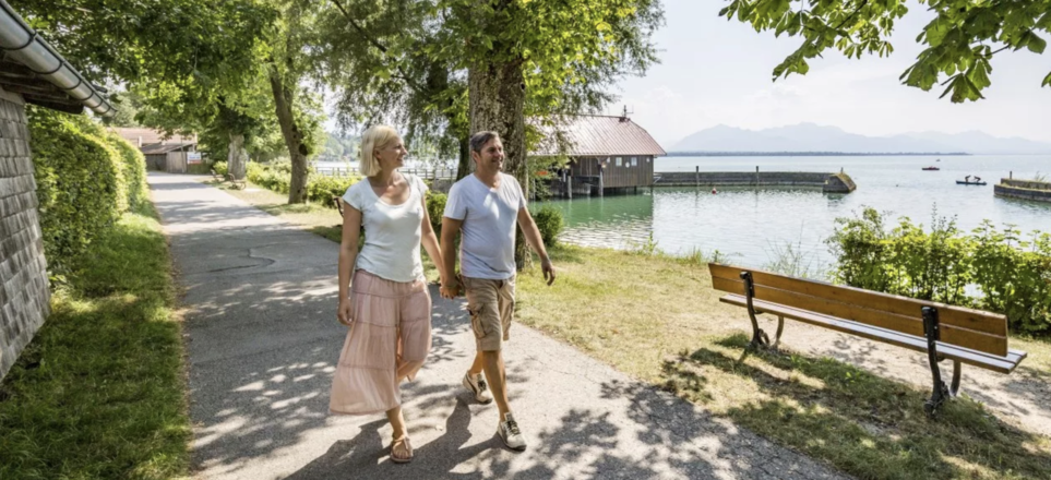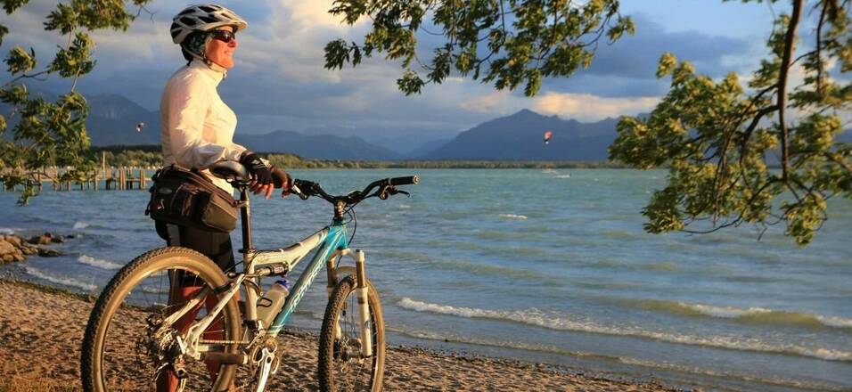 Welcher See-Ort kann seinen Gästen zum Baden schon ein sechs Kilometer langes, frei zugängliches und flaches Ufer mit Sonnenuntergängen und Bergkulisse bieten?Naturidyll Chiemsee - aktiv sein & ErholungIn einmaliger Kombination gibt's in Chieming "Chiemsee pur": authentische Naturerlebnisse und aktive Unternehmungen, am See und zu Land. Wasserratten können sich beim Baden, Wind- und Kite-Surfen, Segeln, Kajak-, Kanu- oder Bootfahren austoben. Erholung bieten Spaziergänge auf der langen Uferpromenade mit ihren Spielplätzen, Aussichtsplattformen und Cafés sowie den allgegenwärtigen Aussichtsplätzen mit Blick in die Berge. All das ist in Chieming barrierefrei erreichbar. Mit dem Dampfer ist es nicht mehr weit zum prachtvollen Königsschloss auf der Herreninsel. Zweiradfans starten ihre Tour um den Chiemsee auf einem dichten Wegenetz im Radlparadies der Region Chiemsee-Chiemgau.