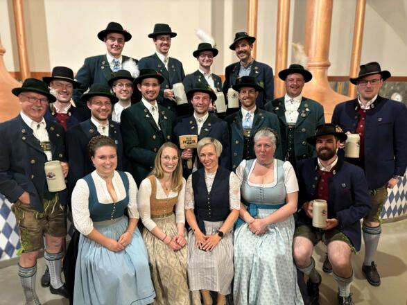 Dem Festleiter fügt der Traunsteiner Trachtenvorstand Hans Hölzle mit einem Augenzwinkern hinzu, „diese wichtige Entscheidung, ob das Bier passt, wollten wir im Festausschuss nicht allein treffen“. Aus diesem Grund waren auch die Röckifrauenvertreterinnen sowie die Vorplattler und Vortänzerinnen unserer drei Vereine und einige Mitglieder der Stadtmusik Traunstein zur gemeinsamen Bierprobe geladen.