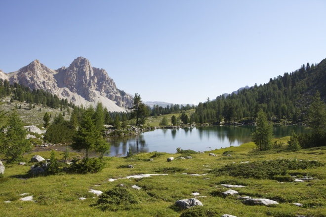 Etappe 5: Fanes - Limojoch - Falzarego Pass - Alleghe - Lago del Mis - Sospirolo; ca. 90 km, 1450 Hm, 10:00h