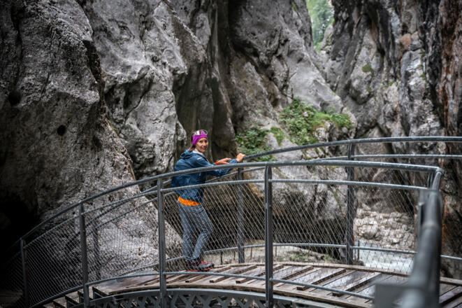 Vom Höllentorkopf steigt man denselben Weg zurück in die Rinderscharte und danach in vielen Serpentinen den Rindersteig hinab zur Höllentalangerhütte. Nun rechtshaltend das Tal hinaus. Mit einem Besuch in der Höllentalklamm wartet auf der Runde ein weiteres, landschaftliches Highlight, bevor es am Taleingang flach zurück zur Talstation der Alpspitzbahn geht.