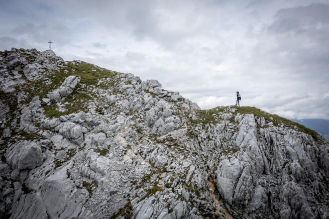 Gipfelanstieg auf den Höllentorkogel ist ausgesetzt, aber gut mit Drahtseilen versichert.