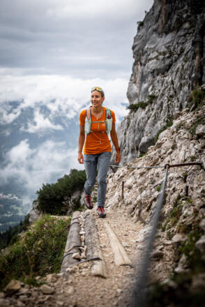 Wanderausrüstung inkl. Regenjacke für den Weg durch die Höllentalklamm.