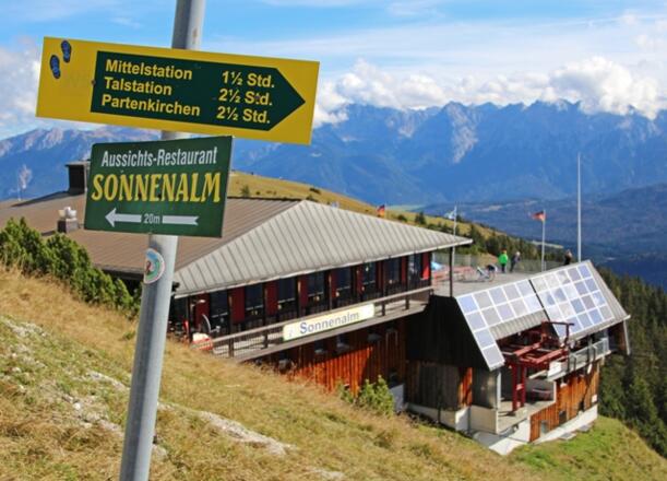 Am Gipfel des Wank kannst du im Wankhaus einkehren oder in der Sonnen-Alm in der Bergstation.