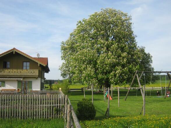 Unser Hof, den wir in der 5. Generation führen, liegt im Voralpengebiet zwischen München und Bad Tölz in traumhafter, ruhiger Alleinlage außerhalb des kleines Dorfes Aufhofen der oberbayerischen Gemeinde Egling im Tölzer Land. Diese Lage macht unseren Urlaubshof zum idealen Ausgangspunkt für Aktivitäten jeglicher Art. Unser Hof besteht seit 1860; das jetzige Hofgbeäude wurde 1913 errichtet. Das 2013 erbaute Ferienhaus mit herrlichem Bergblick ist von einem wunderschönen Obst- und Bauerngarten umgeben und im ländlichen Stil eingerichtet. Für die Kinder ist unser Spielplatz mit Schaukel, Trampolin, Sandkasten und Baumhaus ein idealer Zeitvertreib. Die Eltern können derweil im Schatten der Bäume oder auf einer der Sonnenterassen entspannen. Wir führen einen kleinen landwirtschaftlichen Bio-Betrieb im Nebenerwerb. Während der Sommermonate grasen unsere Rinder auf den umliegenden Wiesen und Weiden und unser Kater Struppi freut sich über jede Streicheleinheit.
