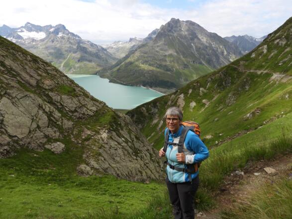 Wir folgen dem Wanderweg bergab und kommen bald wieder zur Bushaltestelle beim Silvretta-Stausee.