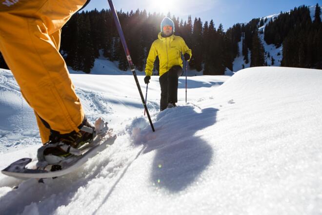Tages-Wanderrucksack (ca. 20 Liter) mit Regenhülle, bequeme und wasserdichte Winterschuhe oder feste Wanderschuhe, ggf. Grödeln und Gamaschen, warme und wetterfeste Kleidung im Mehrschicht-Prinzip, Mütze/Stirnband, Schal, Handschuhe, Sonnenund Regenschutz, Proviant und Trinkwasser, Thermosflasche mit Heißgetränk, Erste-Hilfe-Set, Taschenmesser, Handy, ggf. Stirnlampe, Kartenmaterial, ggf. Teleskopstöcke