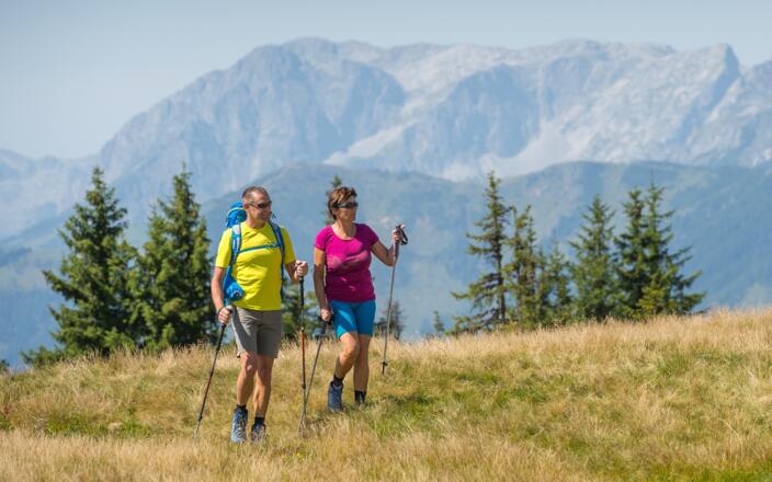 „Herrgott, d’Hoamat is schön!“ Die Inschrift im Querbalken des Gipfelkreuzes spricht von tiefer Dankbarkeit und fester Überzeugung. Es lohnt sich also, dem 1.769 Meter hohen Rossbrand, dem Hausberg von Radstadt, einen Besuch abzustatten und den Anblick, der den namenlosen Schnitzer einst zu seinem Werk bewogen hat, selbst in Augenschein zu nehmen. Im Radstädter Bürgerbergweg markiert eine große Enziantafel den Einstieg in den Wanderweg Nummer 462, der in Richtung Gipfel führt. Falls Ihnen die drei Stunden Aufstieg auf einmal zu mühsam sind: Nach dem ersten Drittel des Weges bietet die Bürgerbergalm einen guten Grund für eine Rast. Frisch gestärkt folgen Sie den Wegweisern anschließend durch den schattigen Wald hinauf. Und dann stellen Sie fest, dass der Holzschnitzer nicht zu viel versprochen hat. Der 360°-Panorama-Blick, vom höchsten Punkt des Rossbrand, war jede Mühe wert. Über 150 Alpengipfel – Hochkönig, Dachstein, Bischofsmütze, Großglockner, Großvenediger und viele mehr – sorgen dafür, dass man diese Bergtour sicher nicht so schnell vergisst. Wie schön doch die Heimat ist – und ihre kulinarischen Schmankerln! Wer der beeindruckenden Aussicht Einblicke in die heimische Küche folgen lassen will, nimmt beim Abstieg den Wanderweg 461 und stattet dem Berggasthof Rohrmoos einen Besuch ab. Das Restaurant ist bekannt für fangfrische Forellen und Wildspezialitäten aus eigener Jagd.