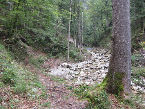 Dieser angenehme Rundweg – mit leichten bis mittleren Steigungen - beginnt am Dorfplatz in Sachrang. Nach Überquerung der Staatsstraße kommen Sie zur Pumpstation am Waldrand, biegen nach links (NO) in den Wald ab und verlassen den breiteren Fahrweg Nr. 14, um dem schmalen Pfad ins Gehölz zu folgen. Vorbei an Eiben und dem Wasserschutzgebiet überqueren Sie den Almwirtschaftsweg und betreten an der Futterstelle den sogenannten "Märchenwald" mit seinen wilden Felsbrocken, hohen Fichten- und Tannen-Beständen. Gegen Ende des Waldstückes überschreiten Sie einen kleinen Bach und erreichen einen breiteren Weg, der durch offene Weideflächen zum Ortsteil Berg führt. Dann geht es hinter der kleinen Brücke über den Talgraben rechts bachaufwärts weiter in den Wald, vorbei an der Ruine der ehemaligen Wasserkraftanlage Labenbach, auf einem schmalen Pfad bergauf zum romantischen Wasserfall. Ruhen Sie auf der Bank ein wenig aus und genießen Sie das Naturschauspiel, um dann verzaubert den Rückweg über den Anmarschweg durch Berg anzutreten. Biegen Sie am letzten Bauernhof nach rechts (NW) in Richtung Staatsstraße Aschau-Sachrang ab, die Sie am Anwesen überqueren, um dann über die Brücke auf die Westseite der Prien zu gelangen. Von dort geht es (identisch mit dem Prientalwanderweg Nr. 12 oder Grenzenlos Wanderweg) über bewaldete Anhöhen direkt zurück nach Sachrang.