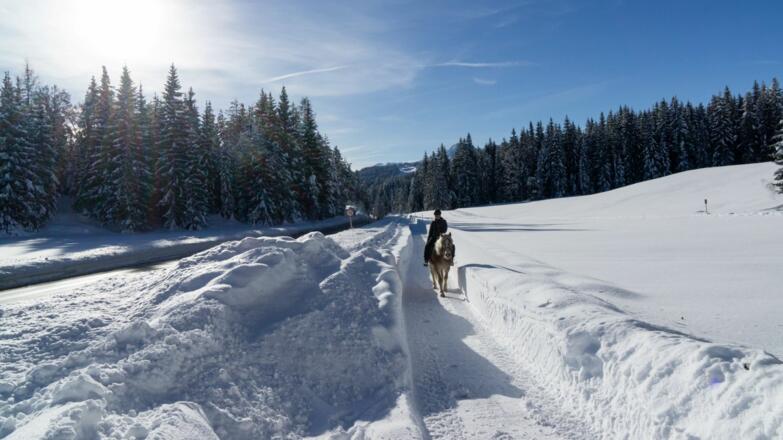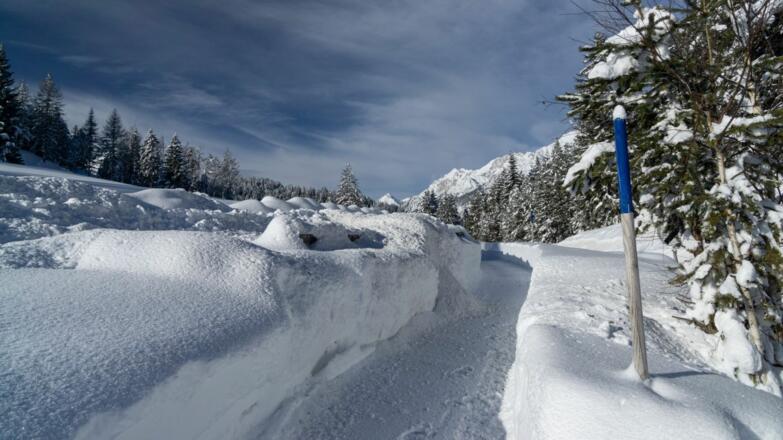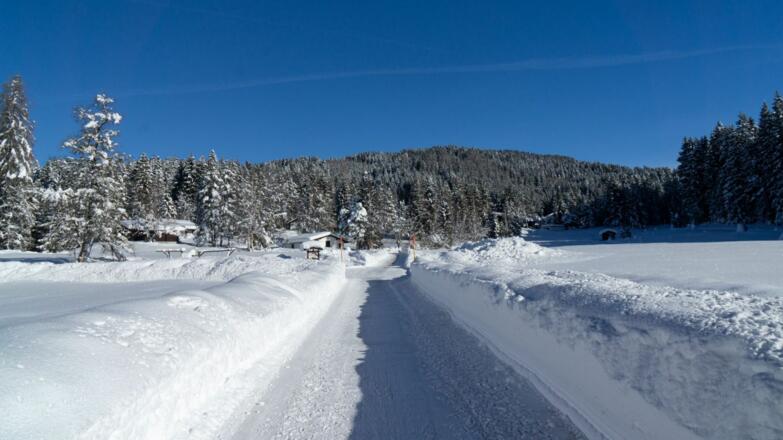 Auch im Winter verbinden die beiden Ortschaften Seefeld und Leutasch wunderschöne Wanderwege. Wer von Leutasch startet, beginnt am (gebührenpflichtigen) Parkplatz beim Musikpavillon Weidach, alternativ geht’s mit dem Regionalbus bis zur Haltestelle Weidach/Zentrum und von dort zur Talstation am Katzenkopf. Links davon startet auch schon der Wanderweg Richtung Waldrand. Nach einer kurzen Waldpassage geht es ein Stück an der Bundesstraße entlang, welche man an der nächsten Weggabelung linksseitig kreuzt, um dann gleich wieder rechts auf den beschilderten Wanderweg nach Seefeld zu wechseln. An der Mahderkapelle erneut die Bundesstraße kreuzen und dem Schotterweg daneben über Neuleutasch bis nach Unterkelle weiterwandern. Dort wieder links ab in den Wald und der Beschilderung bis zum Landgasthof Triendlsäge folgen.