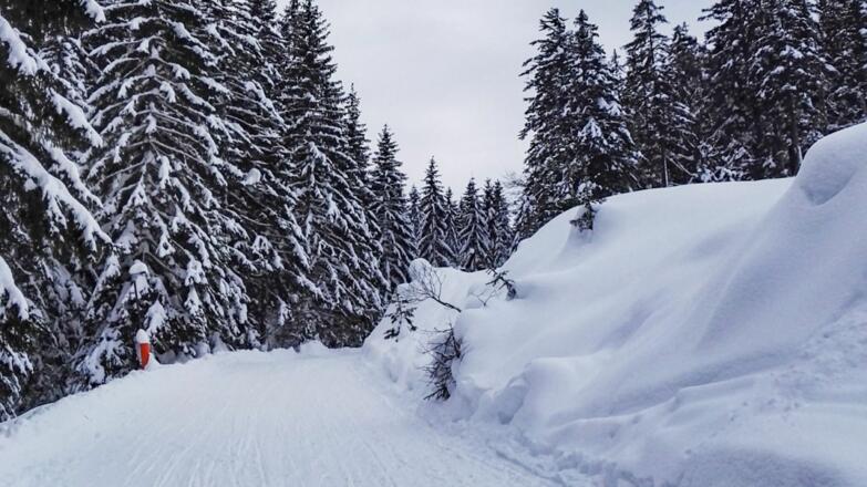 Da man auf der gleichen Route im Winter auch rodeln kann und der Aufstieg unterwegs einmal die Skipiste kreuzt, ist unterwegs unbedingt auf Gegenverkehr zu achten! Bei Bedarf kann man sich an der Talstation gegen geringe Gebühr auch eine Leihrodel holen, alternativ führen von der gemütlichen Katzenkopfhütte (1.360m) Winterwanderwege weiter bis nach Wildmoos, Seefeld und Mösern.
