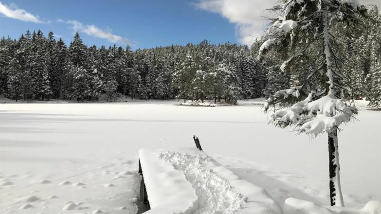 Idyllische Waldwanderung zum winterlich verschneiten Möserer See.