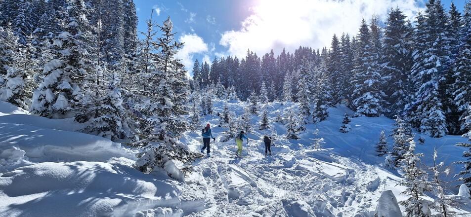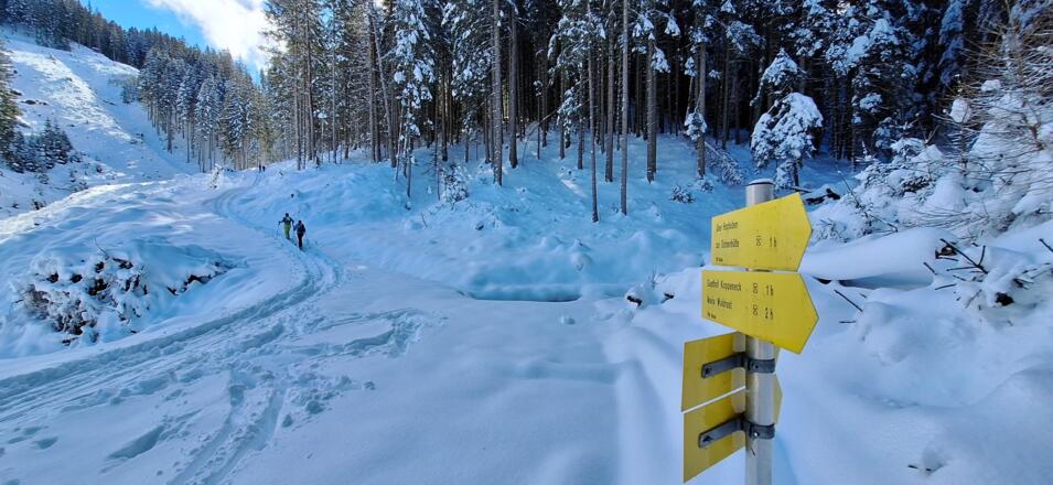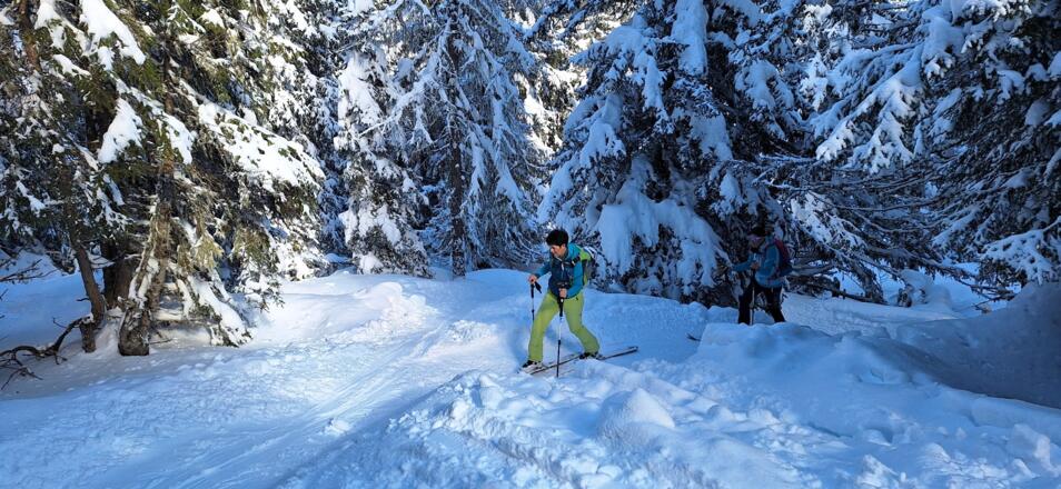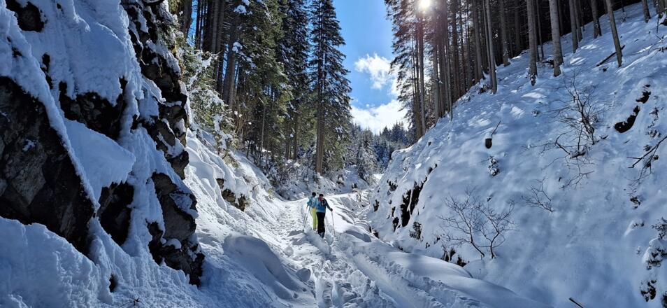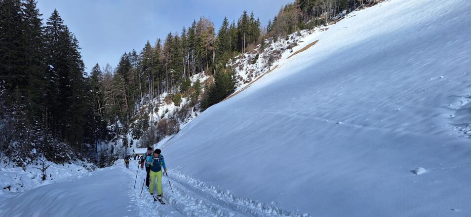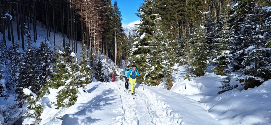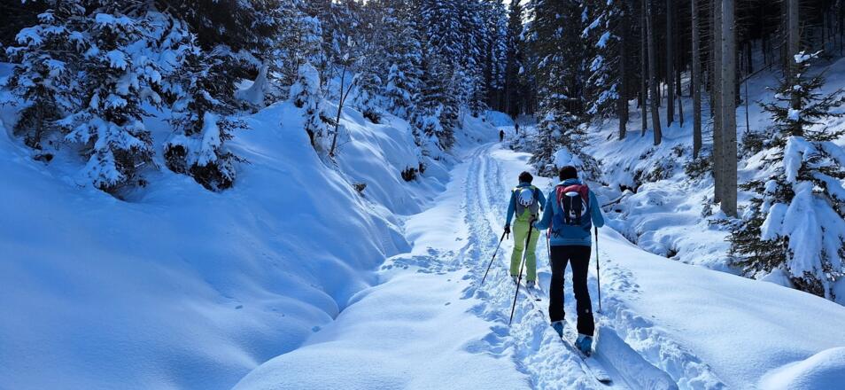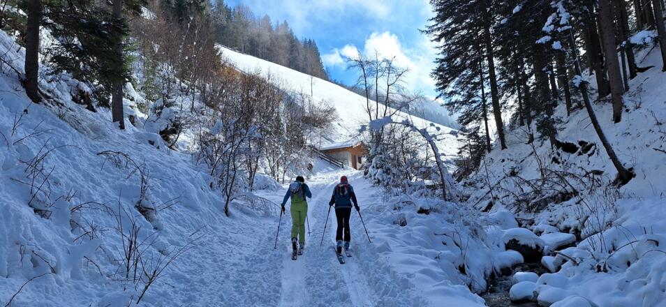 Diese einfache Skitour, die meist durch den Wald führt ist ideal an lawinengefährlichen Tagen. Die Abfahrt führt auf der Piste des Skigebiets Serleslifte-Mieders ins Tal.