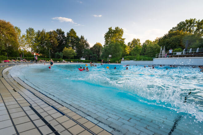 Besuchen Sie das beliebte und beheizte Wellenfreibad im Herzen von Peiting. Erleben Sie stündlich die Wellen im großen Wellenbecken oder plantschen Sie im erhöht gelegenen Nichtschwimmerbecken mit Rutsche und Wasserspielelandschaft. Werden Sie aktiv am Beachvolleyballplatz oder relaxen im Tropical Hangout. Für Kinder ist das Kinderplantschbecken sowie das Klettergerüst am Kinderspielplatz zu empfehlen. In der Nähe des Eingangsbereichs wurde ein Boule-Platz neu gestaltet. Besonders hervorzuheben ist die große Spiel- und Liegewiese in der weitläufigen Grünanlage. Sie sorgt dafür, dass die Besucher genügend Privatsphäre haben. Im Kiosk mit Außenbereich werden Sie immer gerne bedient.