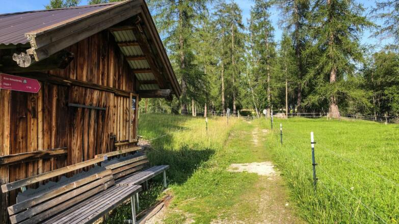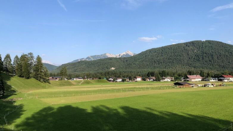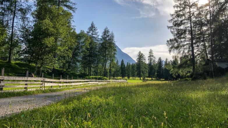 Mittelschwierige Lauf- und Nordic Walkingstrecke entlang dem Leutascher Wiesenweg.