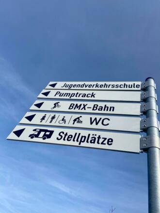 Für sportliche Aktivitäten und Abwechslung sorgt ein Bolzplatz mit Fußballtoren direkt am Areal. Eine besondereAttraktion ist der 130 Meter lange Pumptrack, der sich in direkter Nähe befindet und mit Wellen, Steilkurven undSprüngen für spannende Fahrerlebnisse sorgt.