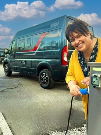 Der Wohnmobilstellplatz „Alte Bergehalde“ lädt alle Wohnmobilreisenden ein, die Schönheit der Natur zu genießenund dabei von der modernen Einrichtung zu profitieren sowie sich von den zahlreichen abwechslungsreichenFreizeitangeboten vor Ort begeistern zu lassen. Weitere Informationen zur Buchung und den Angeboten sind auf derWebsite der Gemeindewerke Peißenberg KU erhältlich.Susanne Lengger (Geschäftsführerin Tourismusverband Pfaffenwinkel) die die Buchungsplattform bereits testet undStrom über eine der fünf Ladesäulen für das Wohnmobil zieht.Frank Zellner