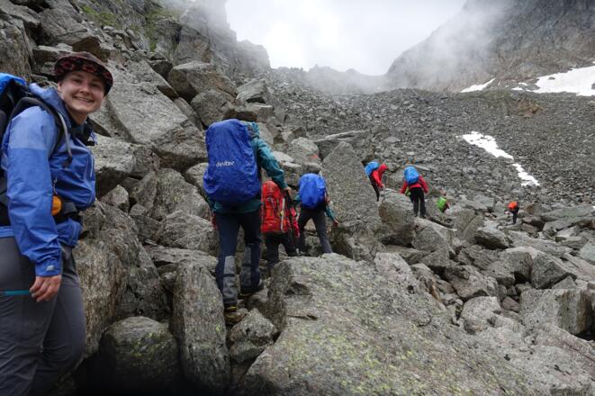 Normale Ausrüstung für alpine Wanderungen ausreichend (Tourenrucksack, stabile Bergschuhe, Tourenbekleidung, Regenbekleidung, ggf. Handschuhe, Trinkflasche, Sonnenschutz, Erste-Hilfe-Beutel)